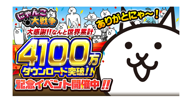 「にゃんこ大戦争」4100万ダウンロード 突破のお知らせ