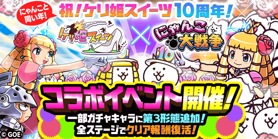GAME 2023.07.13 ポノス株式会社(本社:京都府京都市、代表取締役:辻子依旦、以下「ポノス」)は7月14日(金)~7月16日(日)に京都市勧業館「みやこめっせ」で開催される「BitSummit Let’s Go!!」への協賛出展を記念して、「にゃんこ大戦争」にて、期間限定イベントの開催を決定いたしましたので、これをお知らせいたします。 ・「にゃんこ大戦争」アプリ内でのイベント開催期間(予定) 2023年7月13日(木)11:00 ~ 7月16日(日)23:59 ステージをクリアして報酬をゲット! 「にゃんこ大戦争」アプリ内の期間限定イベントステージ「BitSummit協賛記念!」をクリアすると、報酬としてレアチケット1枚をゲットできます。 記念ログインボーナス登場! 下記期間中にログインすると1回のみ、ネコカン11個をゲットできます。 ・ログインボーナス開催期間(予定) 2023年7月14日(金)0:00 ~ 7月16日(日)23:59 また、「BitSummit Let’s Go!!」イベント当日のポノスブースでは、スマホ版とNintendo Swich版にゃんこ大戦争の試遊台や、リアルにゃんこ大戦争フォトスポットが出撃いたします! ●「BitSummit Let’s Go!!」開催概要 開催期間:2023年7月14日(金)~7月16日(日) 開催場所:京都市勧業館「みやこめっせ」 公式URL:https://bitsummit.org/ ●『にゃんこ大戦争』概要 タイトル 『にゃんこ大戦争』 ジャンル タワーディフェンス 対応OS iOS/Android 配信日 2012年11月15日 価格 基本無料(一部有料) 公式サイト http://www.ponos.jp/games/thebattlecats/ 公式ポータルサイト https://battlecats.club/ 公式PV http://www.youtube.com/watch?v=JBBwbMHnnws 著作権表記 ©PONOS Corp. all rights reserved.